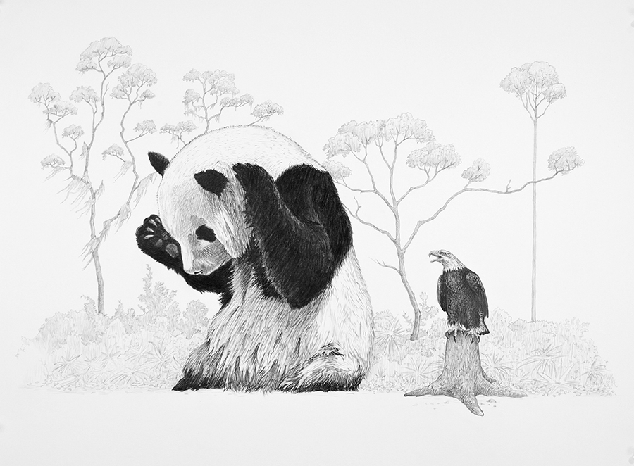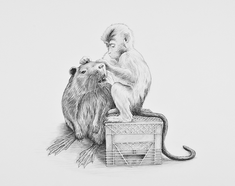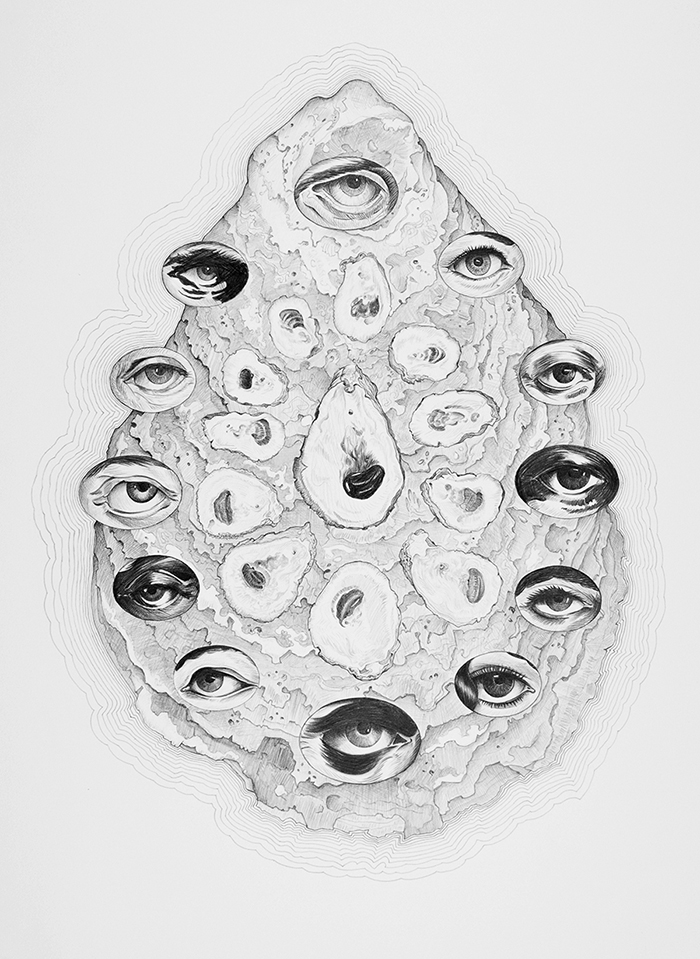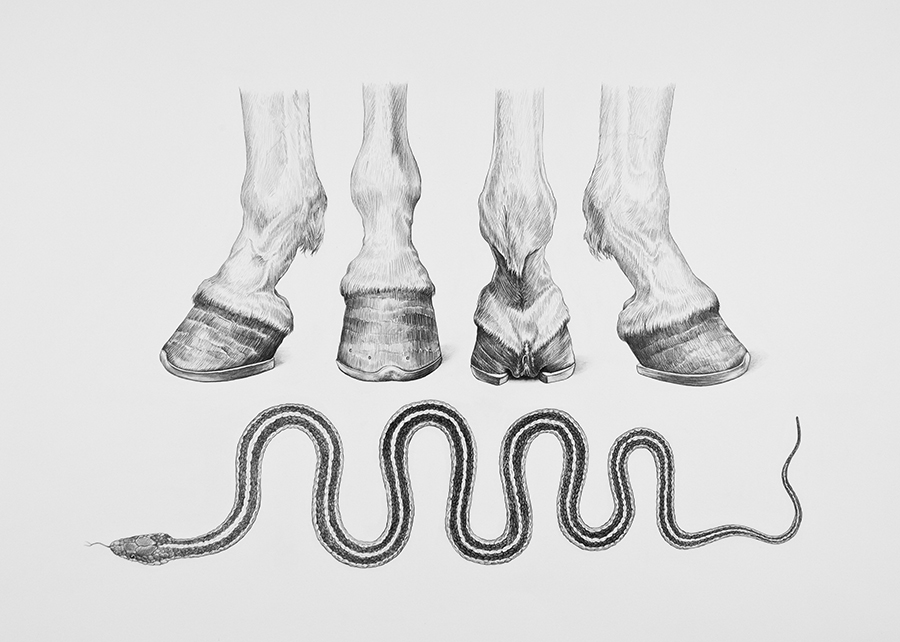 All drawings: 2012, graphite on paper, 22” h x 32” w, framed; hinge mounted on acid-free foam core with plexiglass